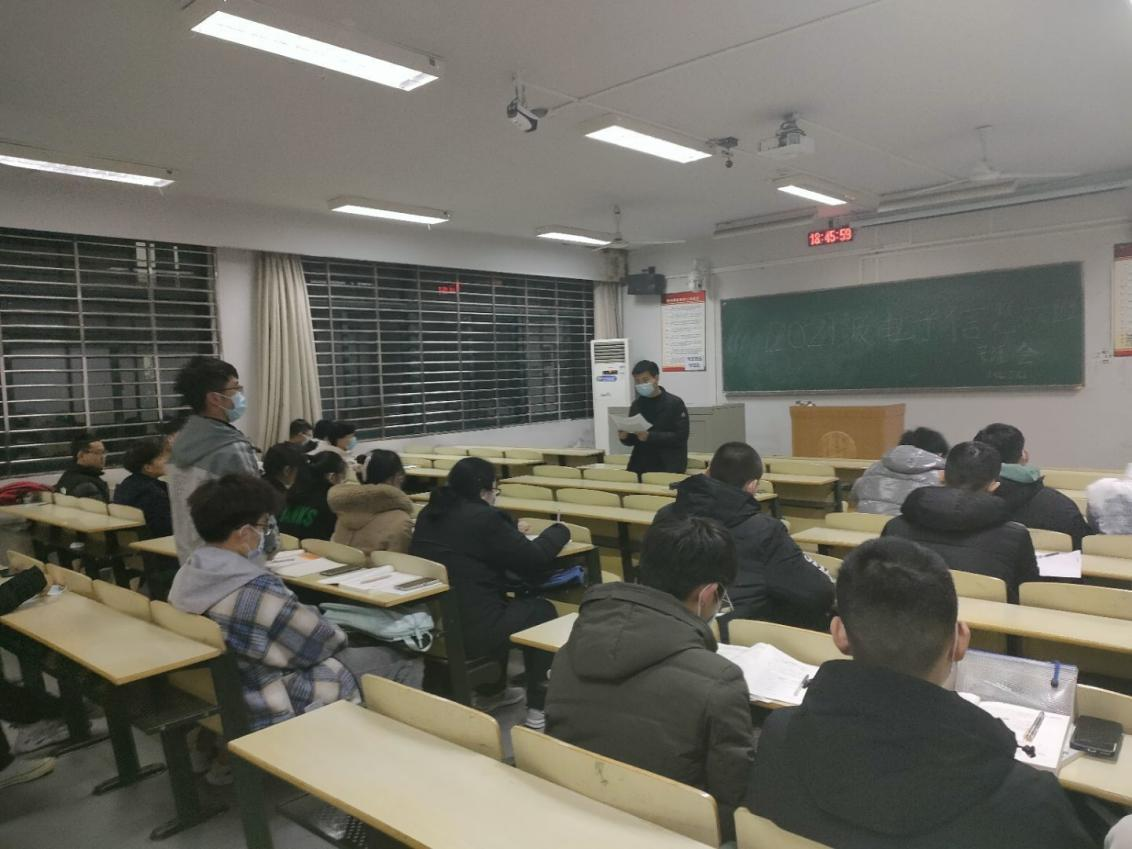 李国保就2021年学院的学生工作进行了回顾,肯定了各位班主任在开展思想教育和专业学习引导方面取得的育人成效,随后传达了学校近期学生工作要点和注意事项,对班级存在的问题给大家做了梳理,从疫情防控、本周上网课情况、“四困”学生等多个方面进行了数据分析和交流,特别指出研究生的外出请假、本科生的创新创业,毕业生的考研录取、调剂及就业是接下来工作的“重头戏”。
