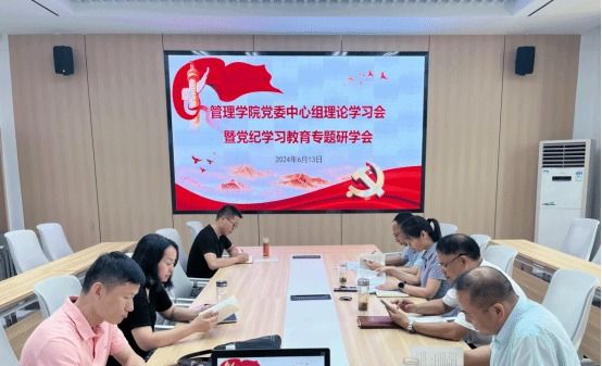 本网讯(通讯员 李梓煜)6月13日上午,管理学院在文科楼会议室召开党委中心组理论学习会暨党纪学习教育第五次专题研学会,学院党委理论学习中心组成员参加,会议由学院党委书记左辉主持。