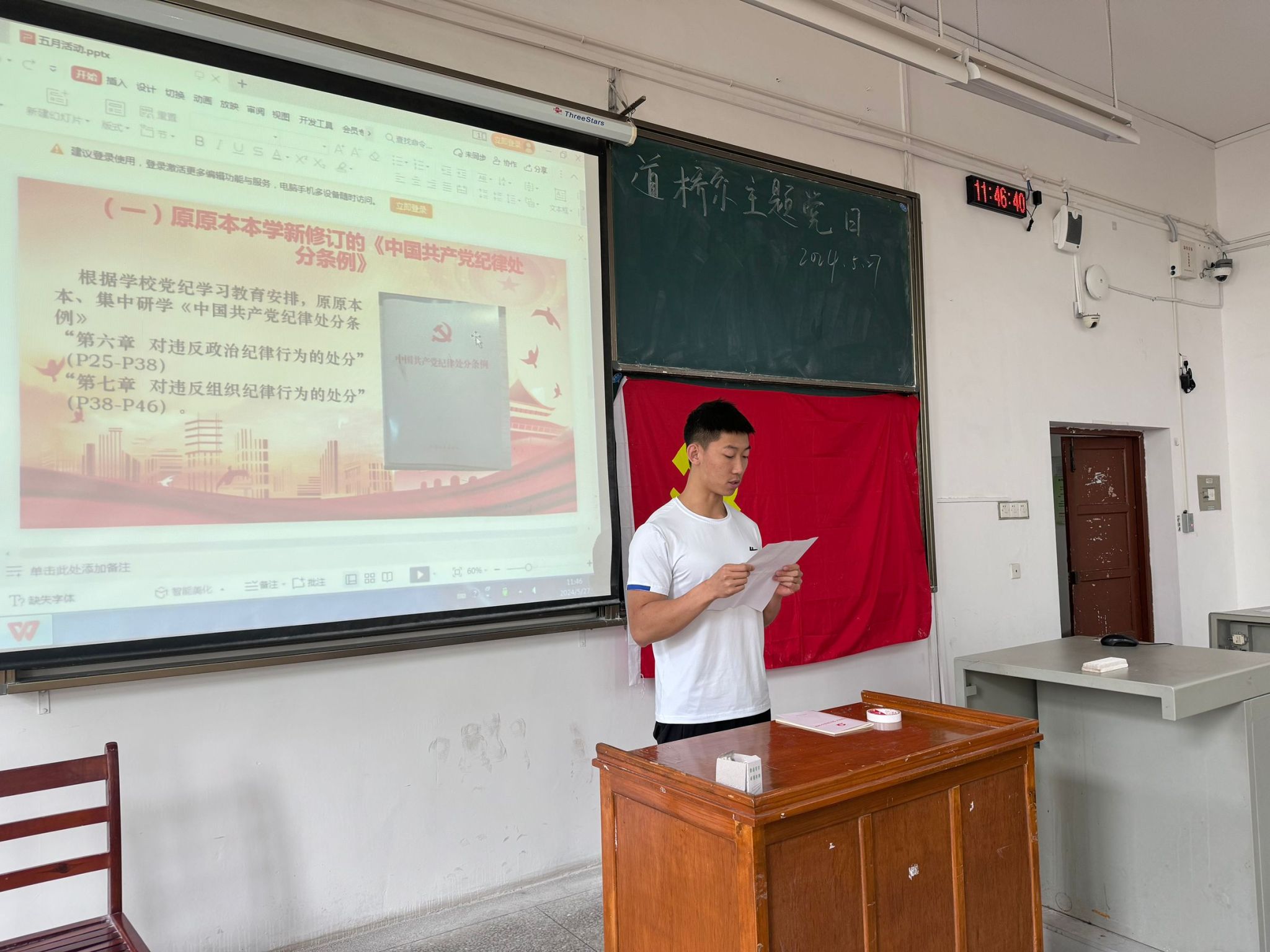岩土与地下工程系本科生党支部书记成轶、建筑工程系本科生党支部书记张中强分别为学生讲授了党纪学习教育主题党课,仔细解读了新修订《中国共产党纪律处分条例》内容,呼吁支部党员要原原本本学《条例》,以信念为灯、以初心为磐、以廉洁为伴,脚踏实地、行稳致远,承担起新征程赋予青年同志的新使命。