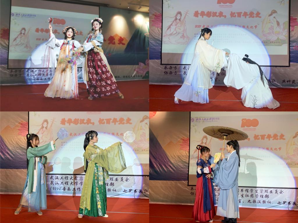 晚会上,我校族林风社团带来的三支汉舞《心灵之翼》、《烟雨行舟》、《乐天舞》诠释了什么是汉韵之美。我校丝竹苑社团带来的古筝独奏《井冈山上太阳红》、WIT音乐工作室以及图书馆学生管理委员会带来的歌唱表演均秉承了悠远的国乐之风,余音绕梁,不绝于耳。七笔书画社和南风诗社的合作节目《御龙行》将中国书法和诗词朗诵完美融合,疾风棍社在《棍展风华》节目中向大家展示了武术与双截棍的巧妙结合,体现了汉服魅力以及中华优秀传统文化的博大精深,充分展现了当代青年人对中华优秀传统文化的热爱和朝气蓬勃的风采。