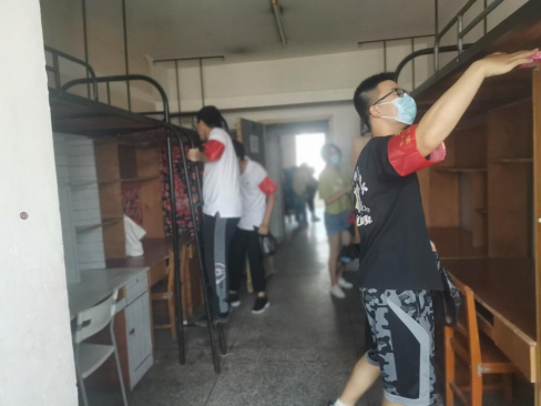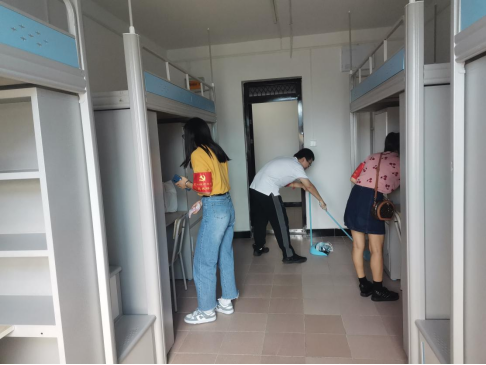 根据新生宿舍楼层的分布,学生党员分为两组开展宿舍大扫除活动。从每一个抽屉、每一个衣柜到桌面、地面,党员们干劲十足,认真清扫,规整每一套桌椅、检查每一处开关,将行动落实到细微之处。