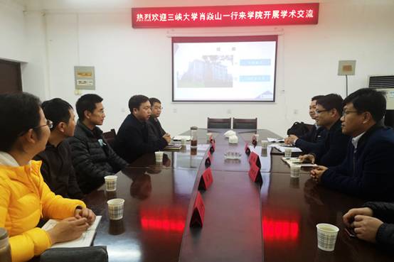 熊伦院长向肖焱山副院长一行的到来表示热烈的欢迎,并就学院发展概况、学科建设、专业建设、人才培养等方面进行了详细介绍。肖焱山副院长介绍了三峡大学理学院发展历程、专业设置、师资建设、培养特色等情况。