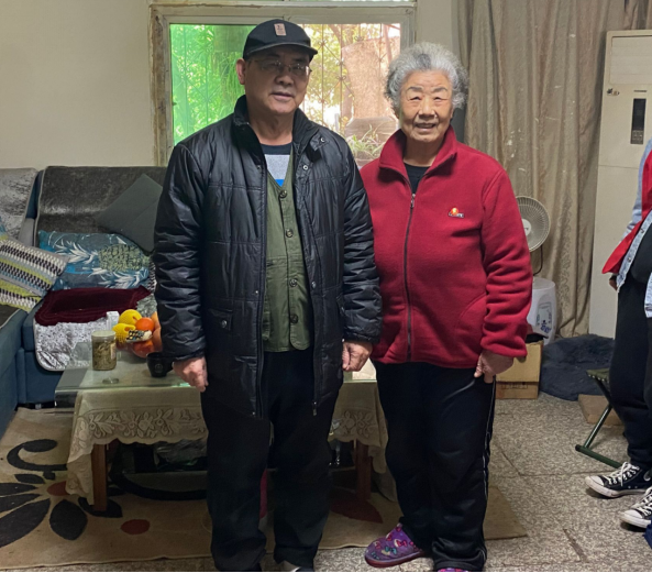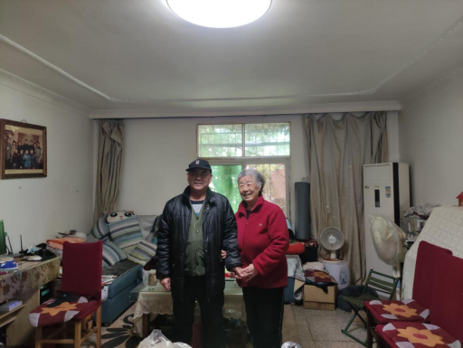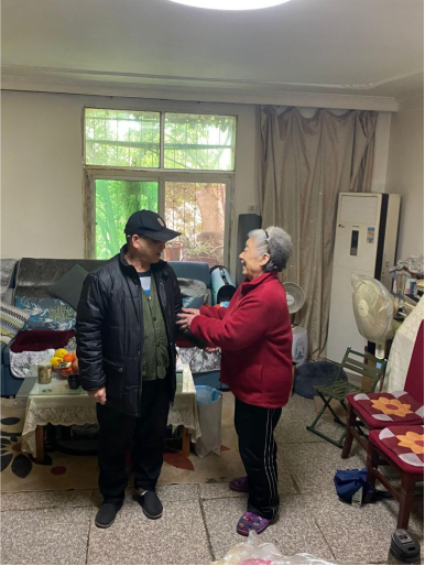 期间志愿者们与老人们亲切交谈、嘘寒问暖。两位老人都将至耄耋之年,却依旧精神矍铄。