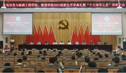 本网讯(通讯员 刘影 尚思颖)9月17日下午,光电信息与能源工程学院、数理学院2021级新生开学典礼在流芳校区四教多功能报告厅隆重举行。487名新生满怀憧憬、以蓬勃向上的姿态开启人生新篇章。