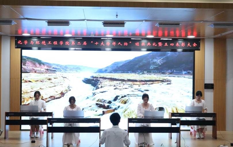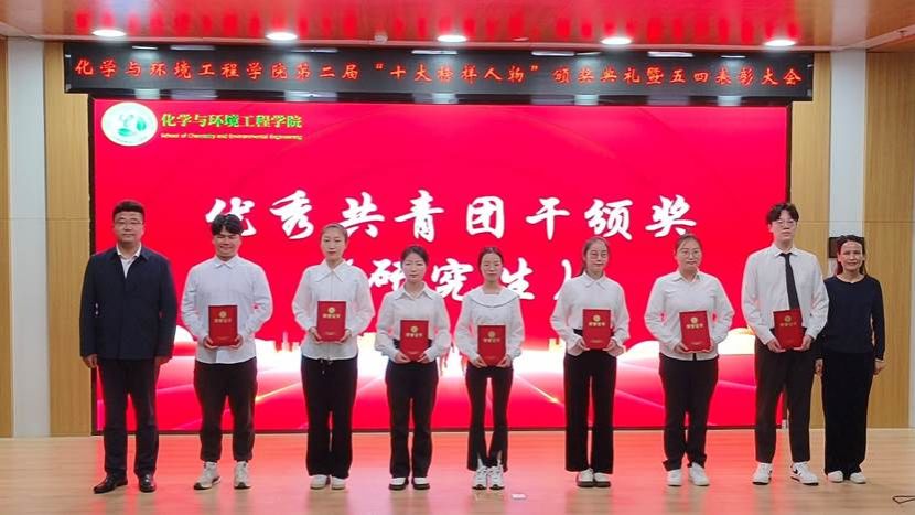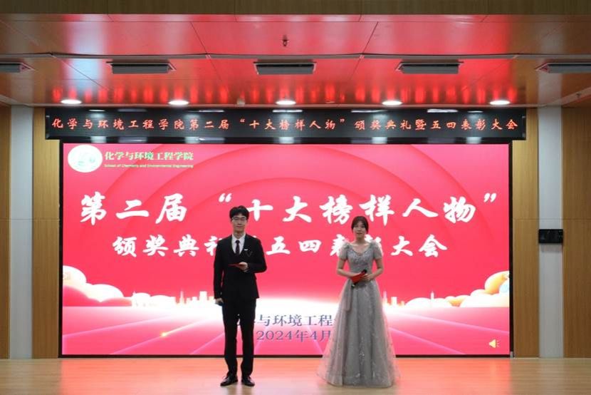 本网讯(通讯员 李杨)4月29日,化学与环境工程学院团委组织开展第二届“十大榜样人物”颁奖典礼暨五四评选表彰大会。学院党委书记张宗良、院长余军霞、党委副书记许守飞、副院长张华丽,各教研室主任、研究所所长、全体辅导员、班主任和团员青年代表参加大会。