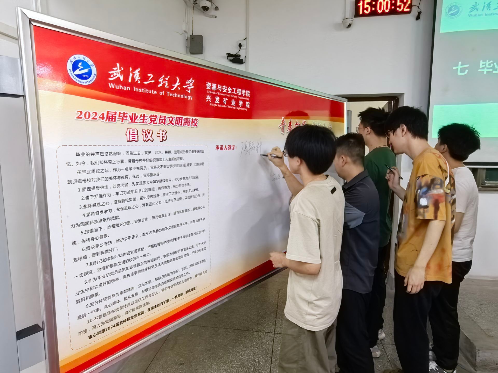 本网讯(通讯员 黄橙)6月12日,兴发矿业学院资源与安全工程学院党委组织开展“青春向党 扬帆起航”2024届毕业生党员教育大会。学院党委书记江本武、党委副书记李佳、学生党支部书记以及全体毕业生党员参加了此次大会。