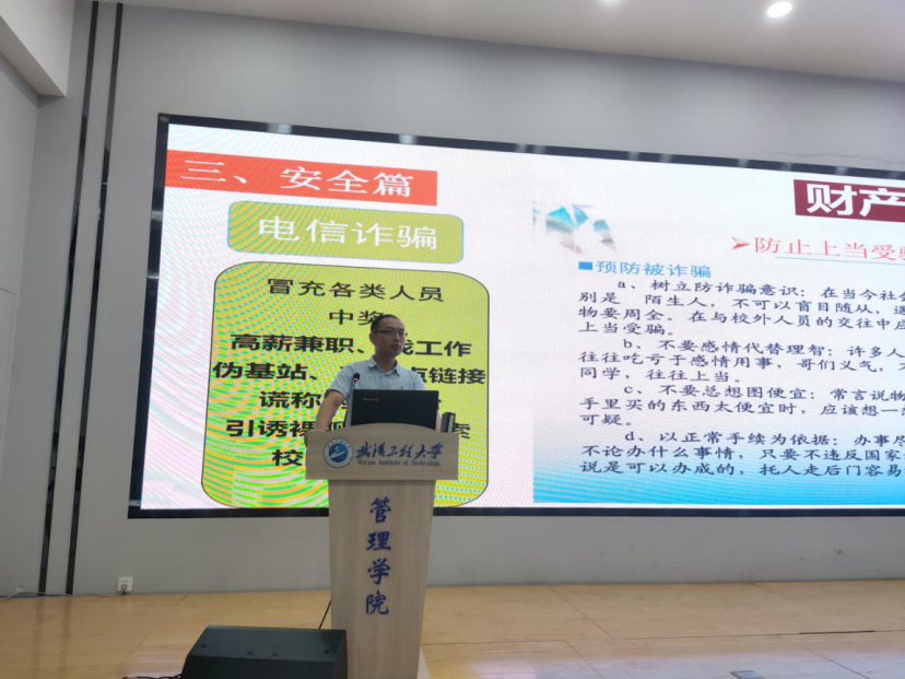 本网讯(通讯员 伍丹丹)为进一步增强安全防范意识,加强留校学生安全管理,营造温馨和谐的学习环境,切实提高暑期留校学生学习成效。7月18日,管理学院在文科楼413报告厅召开2021年暑期留校学生交流会暨安全教育大会。管理学院党委副书记李义伟、全体辅导员、全体留校本科生、研究生参加了此次会议。会议由2019级辅导员王海澎主持。