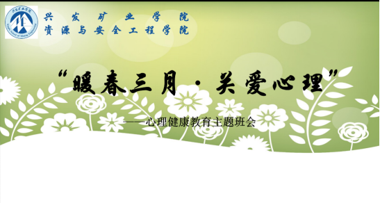 本网讯(通讯员 徐厚龙 王耀眉)在疫情防控工作常态化的形势下,为丰富学生校园学习生活,增强学生的心理调适能力,普及心理健康知识,构建和谐校园,资源与安全工程学院在全体学生班级中组织开展了“暖春三月·关爱心理”的心理健康教育系列活动。