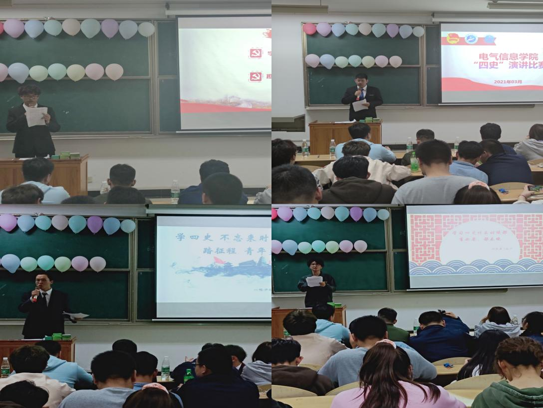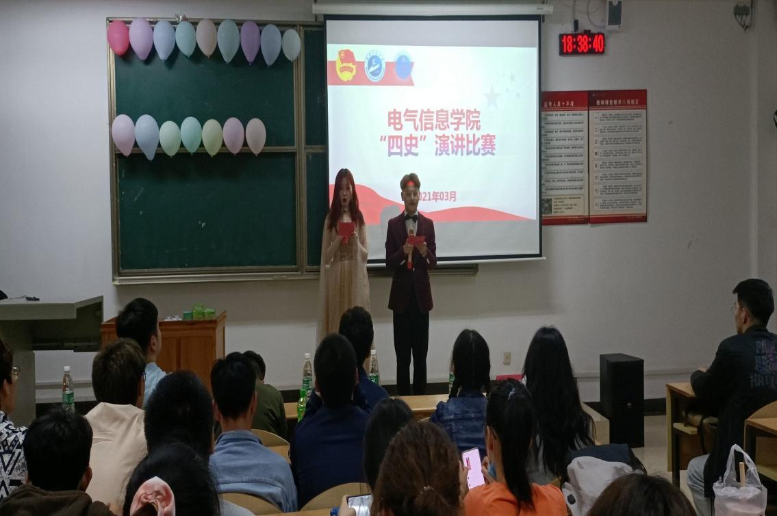 本网讯(通讯员 任伟)为贯彻落实习近平总书记关于开展“四史”教育重要讲话和指示精神,持续深化爱国主义教育,根据尊龙凯时人生就是博关于开展党史学习教育的实施方案等文件的相关要求,进一步坚定学院广大青年学生“知党史、感党恩、跟党走”的理想信念,电气信息学院于2021年3月28日在L1106举行“四史”演讲比赛。