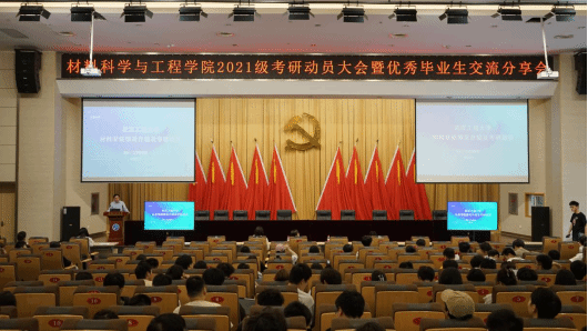 本网讯(通讯员 芦梦荻)5月9日下午,材料学院在四教多功能报告厅举行考研动员大会。学院院长江学良、党委副书记张琼、高材教研室教师代表杨欢、材化教研室教师代表付慧莉、2021级全体本科生参与动员会。活动由2021级辅导员芦梦荻主持。