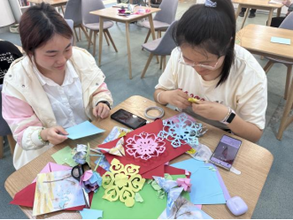 活动中,志愿者带领在场的同学进行了玫瑰花折纸与中华传统剪纸活动,引导同学们感受母爱,表达对母亲的感恩之情。现场的同学们热情高涨,每一个手工作品都表达了对母亲浓浓的爱意,也激发了同学们感恩之心,同时让同学们在快乐放松的氛围里培养自身健康阳光、积极向上的良好心态。