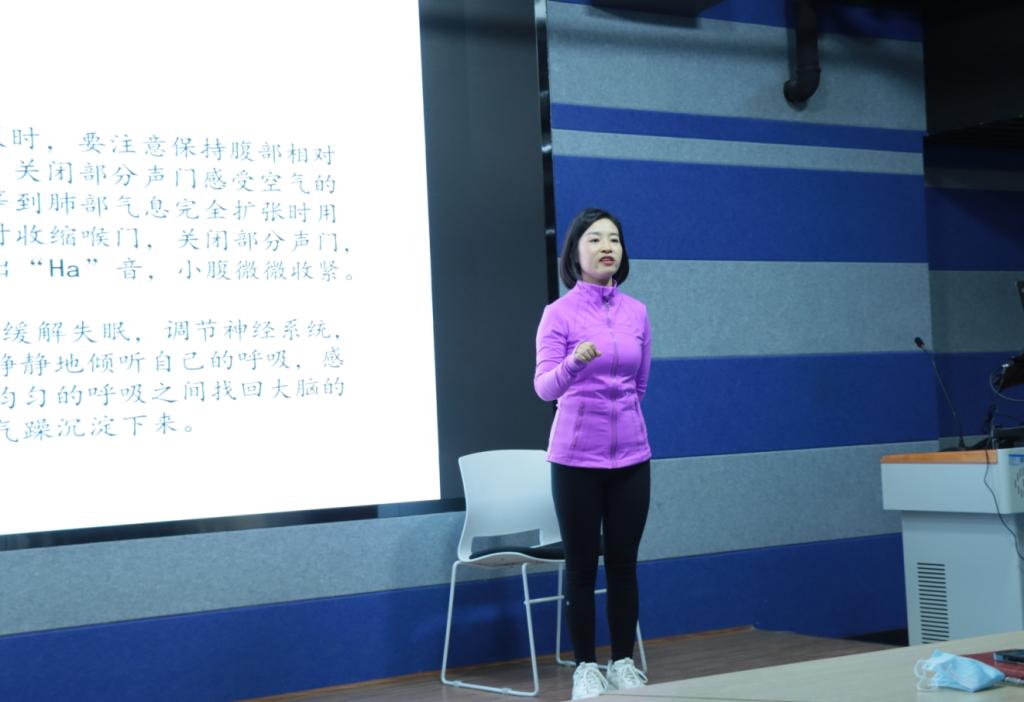 分享会结束后还开展了辅导员提升幸福力培训活动,由百伶瑜伽创办人、宜都市瑜伽协会会长黄凯老师担任主讲人。她以“瑜伽减压、调理亚健康”为主题,详细讲解了如何减压及瑜伽减压的基本原理,现场演示了呼吸法、手印、体位法等减压方式,欢乐轻松的气氛贯穿整个讲座过程,黄老师以绘声绘色的讲解和富有趣味的互动环节感染了现场所有参与培训的辅导员,大家都积极参与了互动,掌声不断,笑声不断,达到了放松心情、调试身心的理想效果。