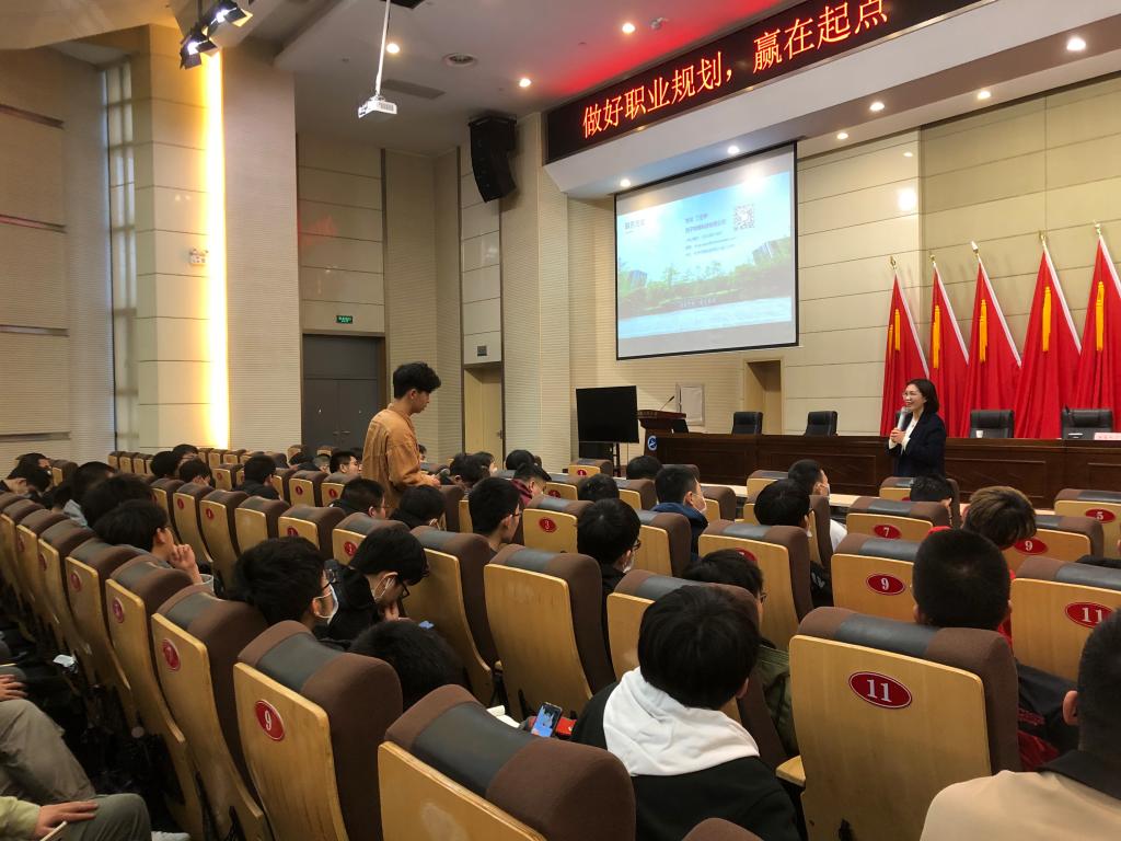 讲座上,丁亚琴从职业选择、职业规划、职业心态等三方面做了一场内容详尽的职业规划讲座,她期望学弟学妹们应早做好职业规划,不断认识自己、探索自己、丰富自己,要有意识地培养职业素养,明确职业目标。讲座最后,丁亚琴还就一些具体问题与同学们进行了交流互动。