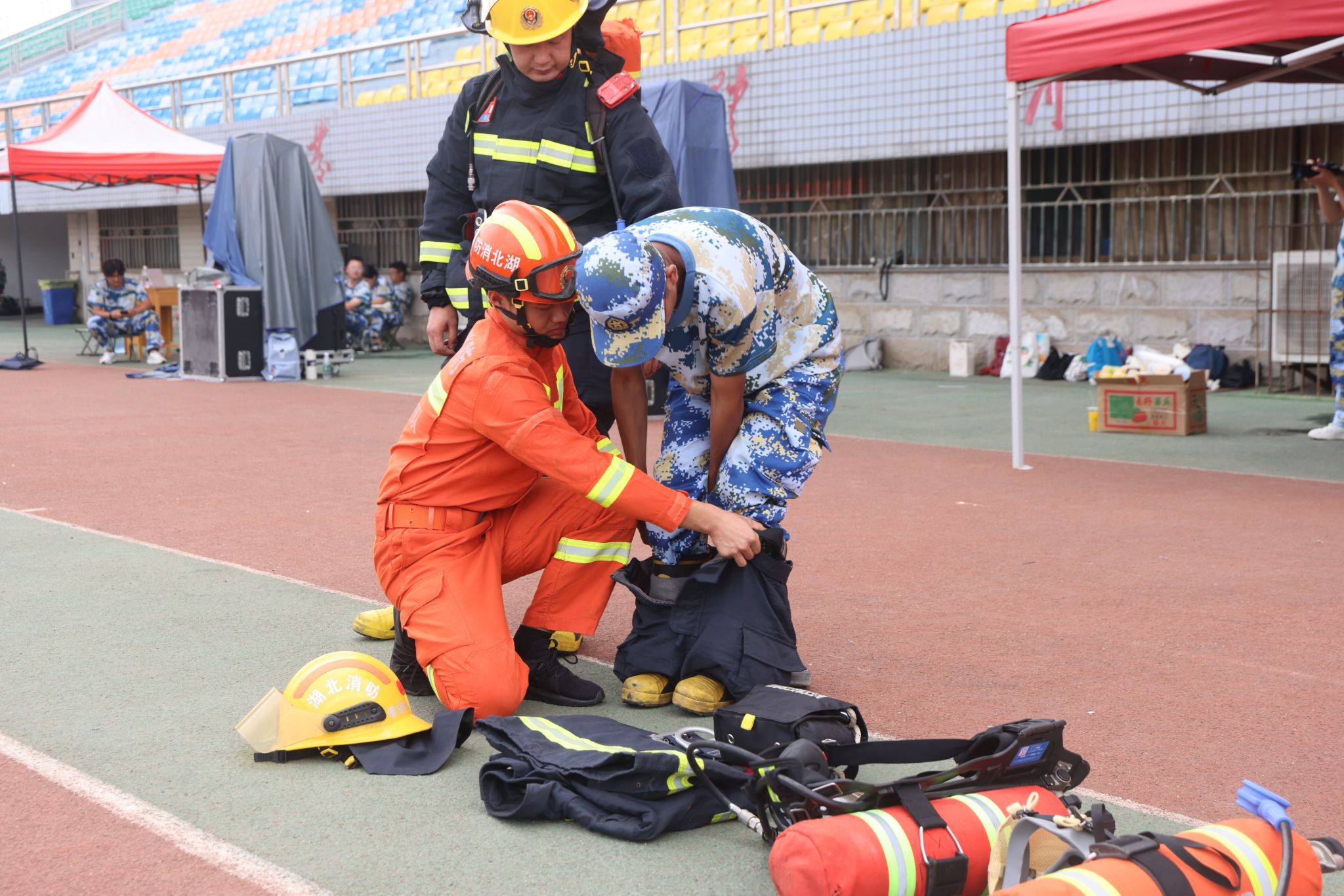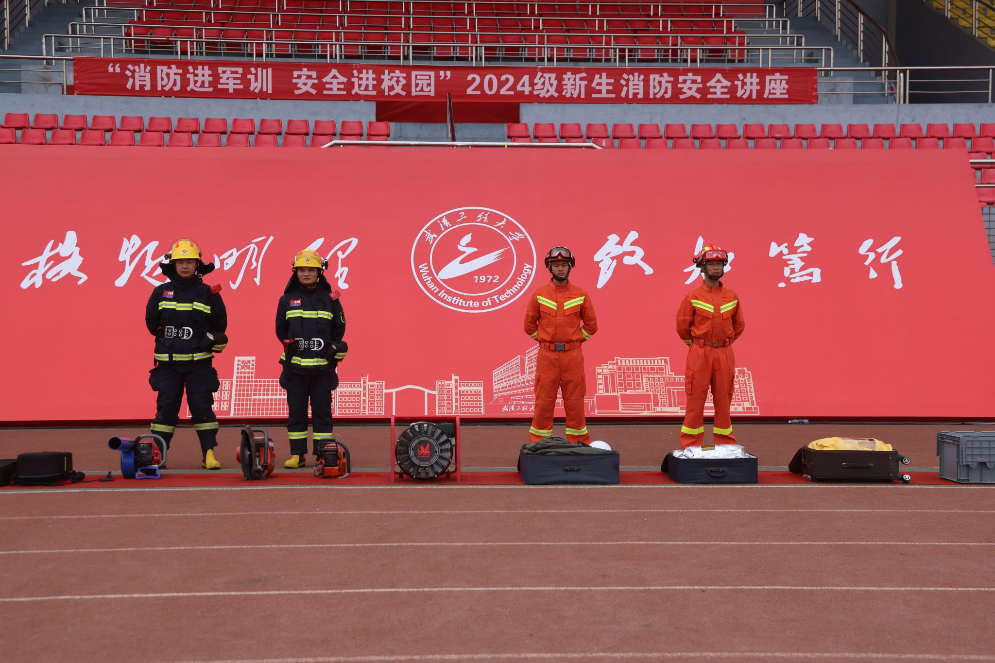 本网讯(通讯员 毛晓晋 李锐)9月19日下午,学校保卫处、武装部联合东湖高新区佛祖岭消防救援站,在两校区运动场开展了“消防进军训 安全进校园”平安校园消防安全系列教育活动。