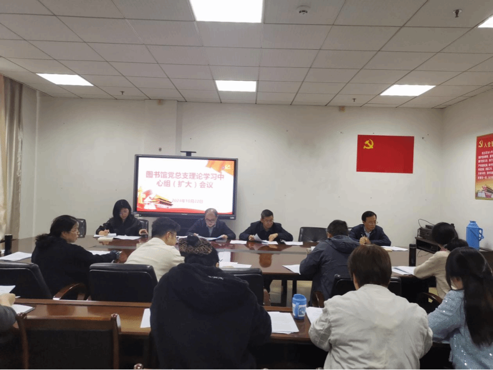 本网讯(通讯员 何洁)10月22日,图书馆召开党总支理论学习中心组(扩大)会议,深入学习贯彻党的二十届三中全会和省委十二届七次全会精神,贯彻落实学校党委的工作部署。馆领导班子成员、党总支委员、工会主席、各党支部书记、各部(室)主任参加会议。会议由图书馆党总支书记曹迅飞主持。