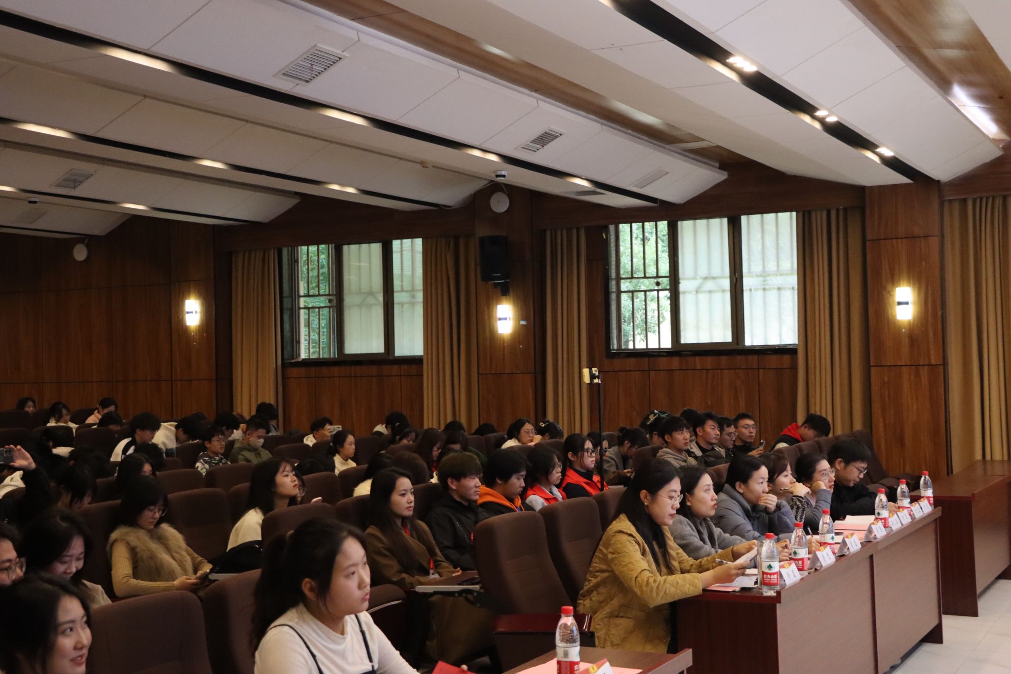 本网讯(通讯员 任鹏)11月22日下午,校团委在学校计算机大楼图灵报告厅举行2024年“大学生社区实践计划”总结工作项目答辩答辩会。湖北省青年志愿者行动指导中心干部肖艳艳、当代社区党委书记刘梦洁、天证券团委副书记赖薇茹,党委武装部副部长兼学工部副部长徐凯、科学技术发展院副院长(挂职)李茜、校团委副书记陈恩雨担任评委,活动由校团委社会实践部任鹏老师主持。各学院团委书记、校院两级重点项目指导教师、实践团队成员共计200余名团员青年参加答辩会。