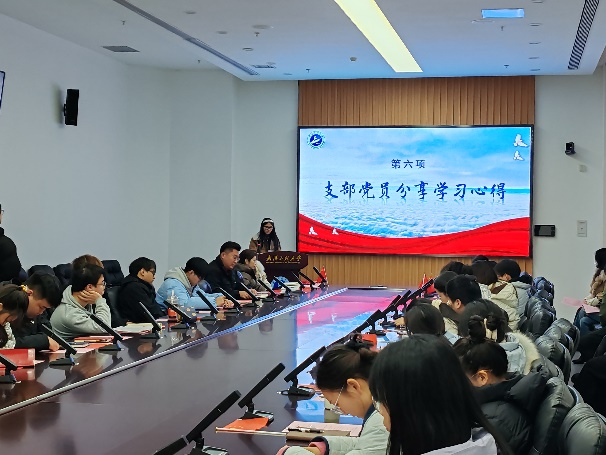 活动在全体成员奏唱国歌声中拉开帷幕。学生党员雷嗣超领誓,全体党员面向党旗庄严宣誓,重温入党誓词。支部组织委员通报了所在支部的党费收缴情况。学生党员代表梅静文领学了《中国共产党章程》部分内容。