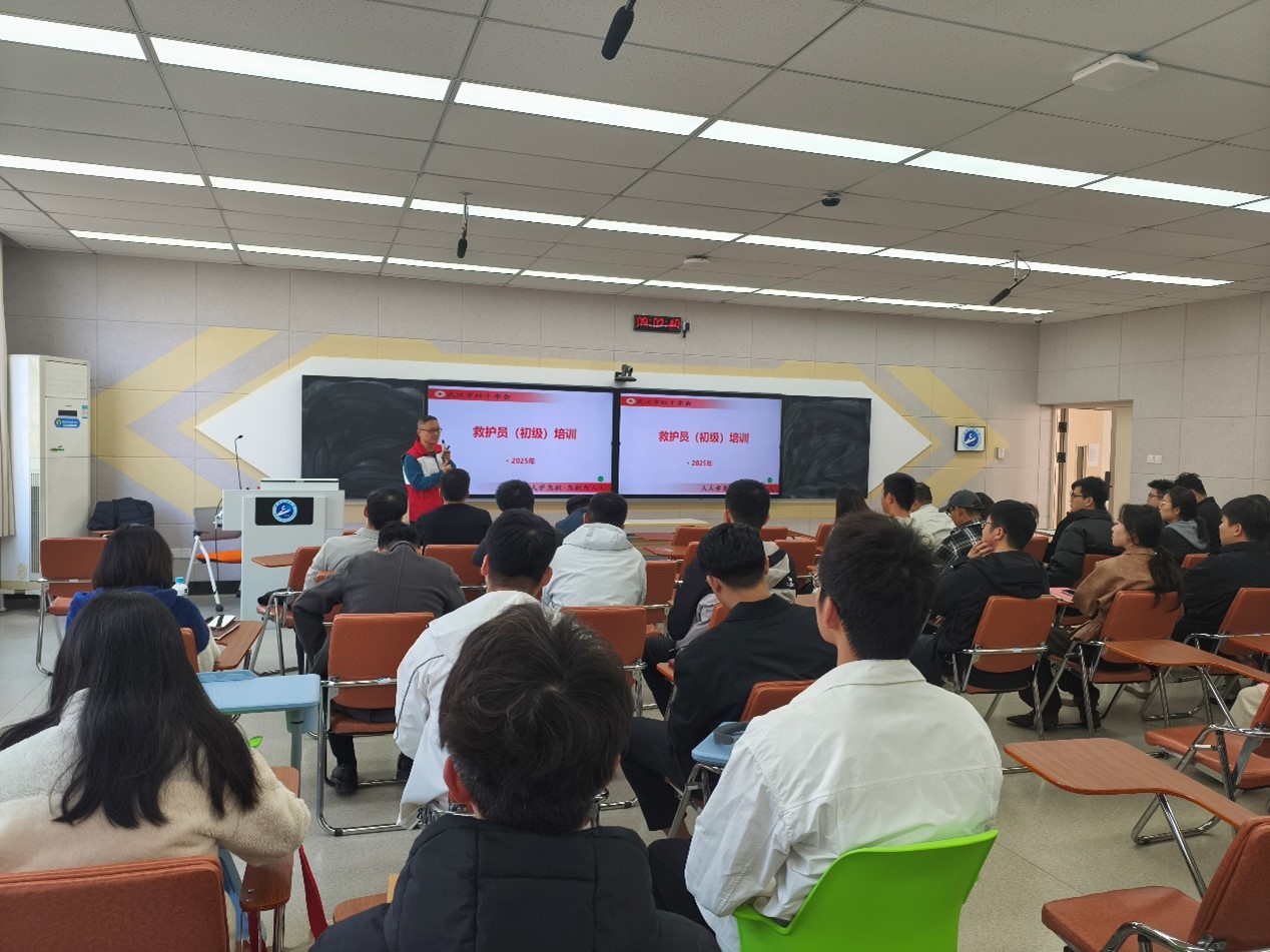 本次培训邀请江夏区红十字会急救培训中心资深专家团队授课,课程内容涵盖校园安全风险识别、突发事件应急处置及标准化急救技能三大模块。参训学员系统学习了心肺复苏(CPR)、自动体外除颤仪(AED)使用、气道异物梗阻解除、创伤止血包扎等核心技术,并通过情景模拟演练掌握了学生突发晕厥、运动损伤、火灾逃生等常见校园安全事件的科学处置流程。强化"黄金4分钟"急救理念,通过分组实操、逐人考核的方式,确保每名辅导员熟练掌握急救技能。