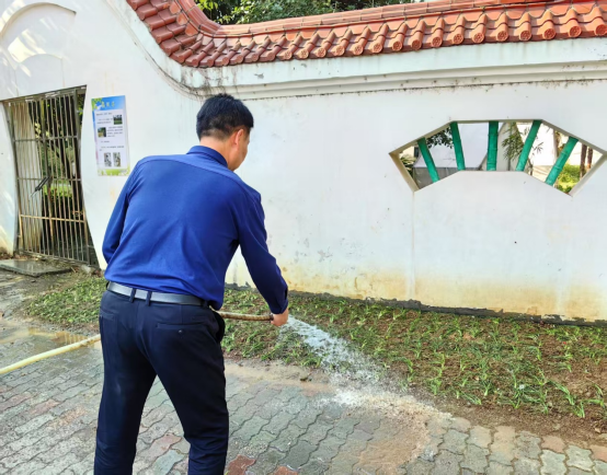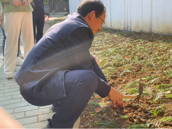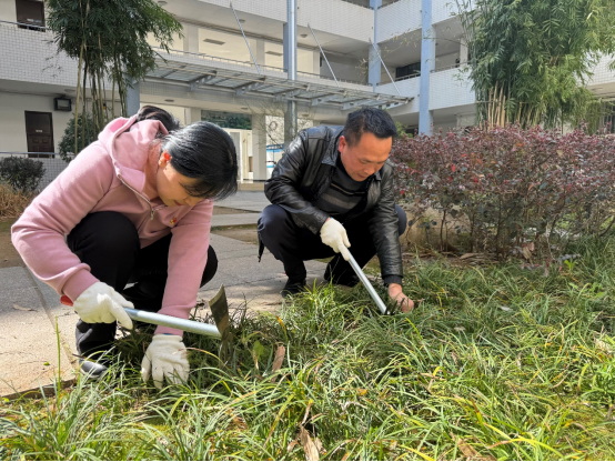 下午14时30分,武昌校区党员分两组重点开展环境美化,流芳校区党员则负责一号教学楼中庭区域的杂草清理。校领导马小龙以普通党员身份参与劳动,与党员们共同挥洒汗水,展现了党员干部的示范引领作用。