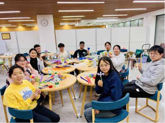 创作环节中,参与者们围坐成创意圆桌,随着彩色扭扭棒在指间流转,抽象思维逐渐具象化为立体造型:既有萌态可掬的卡通玩偶,也有抽象派艺术装置,更不乏将管理学科元素融入创作的概念作品。活动现场流淌着舒缓音乐,伴着此起彼伏的欢笑声,一个小时的手作时光悄然流逝。