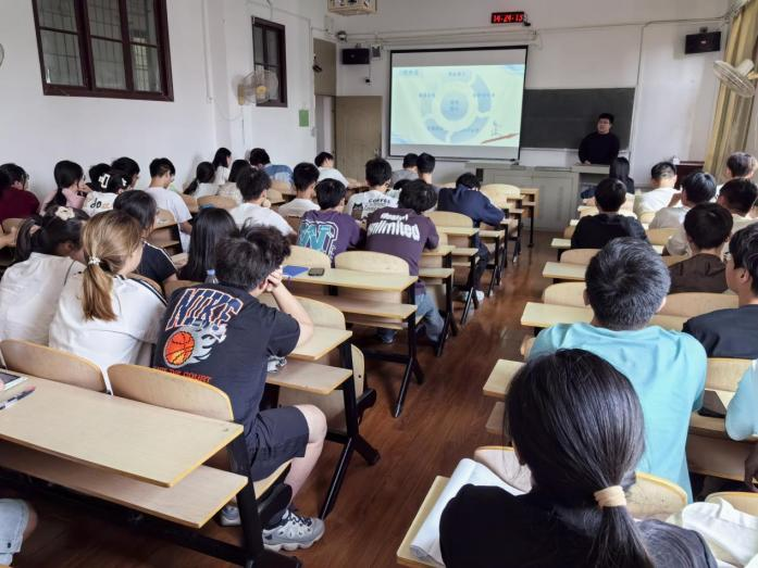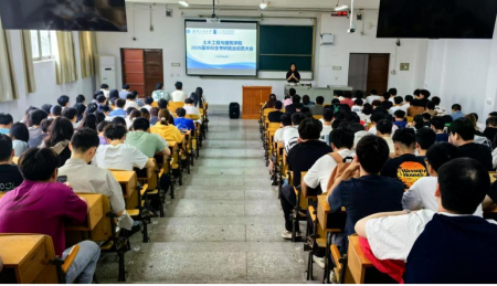 4月25日,学院举办2026届本科生考研就业动员大会。会上,学院党委副书记成轶针对当前就业形势进行解读,结合往届考研、就业大数据,细致地讲述了求职的全过程以及求职择业中应该注意的事项,使同学们更好地熟悉当前的就业形势;引导学生认识自我,更加明确未来的就业方向,更早地为未来求职做好规划。