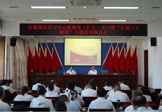 在古楼街道机关会场,王涛教授以《弘扬三大精神 为加快建成中部地区崛起重要战略支点贡献力量》为题,从“三大精神的丰富内涵、支点建设的功能定位、建成支点我们应何为”三个方面展开深入阐述。报告主题鲜明,内涵深刻,对于全街党员干部准确把握“三大精神”,传承和赓续红色血脉,具有很强的针对性和指导性。