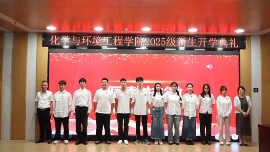 本网讯(通讯员 仝壮)9月15日晚,化学与环境工程学院2025级新生开学典礼在综合楼102报告厅举行。院党委书记张宗良、院长余军霞、党委副书记许守飞、副院长黎俊波、院长助理赵庆彪、工会主席郁先哲、全体教研室主任(所长)、全体二三级教授、教工党支部书记、院办公室主任、全体辅导员、全体新生班主任以及2025级本硕博全体新生参加典礼,典礼由许守飞主持。