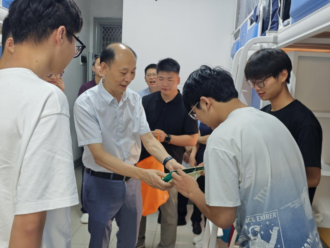 本网讯(通讯员 王祥祥)为深入了解2025级新生入学情况,引导新生尽快适应大学学习生活,9月15日,校党委常委、副校长喻发全带队深入学院学生宿舍慰问2025级新生。学校本科生院党总支书记杨克平、兴发矿业学院资源与安全工程学院党委书记江本武、院长何东升、党委副书记李佳以及学院全体辅导员参加了本次慰问活动。