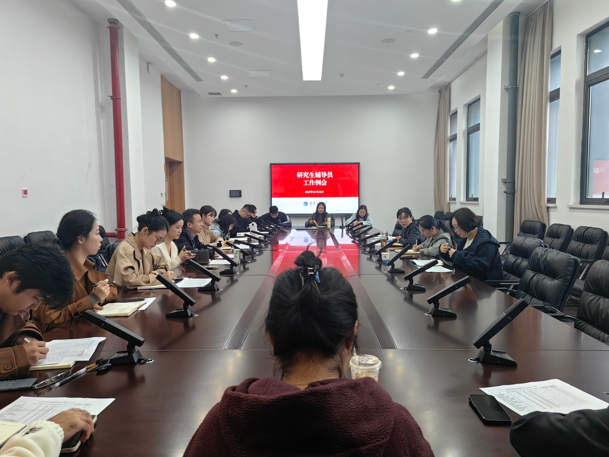 本网讯(通讯员 丁子夕)10月30日,学校在综合楼206会议室组织召开研究生辅导员工作例会,围绕研究生日常管理与安全稳定、“双评”工作、就业推进等重点任务进行部署交流。党委研工部副部长张琼、研工部相关工作人员及全体研究生辅导员参加会议。