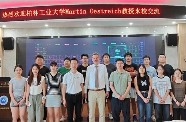 本网讯(通讯员 王奥成 程然)7月22日,应我校邀请,柏林工业大学Martin Oestreich教授访问我校,并在大化工楼610报告厅与学校师生进行学术交流,报告会由化环学院董志兵教授主持。