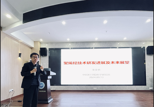董金勇作了题为《聚烯烃技术研发进展及未来展望》的学术报告,介绍了国际聚烯烃技术研究进展、我国聚烯烃技术发展成就、不足与应对措施及未来展望。他在报告中提出,我国聚烯烃技术中Ziegler-Natta催化剂技术与国际水平基本相当,但聚烯烃催化聚合基础研究与国际差距很大,需要着力开展聚烯烃催化聚合和高性能化技术的基础研究,尽快完成“进口替代”工作。董金勇重点介绍了团队从聚烯烃的底层结构入手,利用长链支化的方法,以含二氯硅烷基团的α,ω-双烯烃和α-烯烃为功能聚合助剂,发展同步/原位交联烯烃聚合技术,进行成果转化实例探讨,展示科研造福社会的魅力。