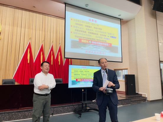 张院士以《陶瓷材料的复合及梯度化效应》为主题,从石器时代、陶器时代、青铜器时代、铁器时代到合成材料时代深入浅出的讲解了材料在人类社会进化过程中的里程碑作用,从自然的启示——竹子、祖先的智慧——越王勾践剑引入梯度的概念,通过梯度复合的功能化效应举例,“教之以事而喻诸德也”,从静高压到动高压,从陶瓷基复合材料和聚合物基复合材料到可陶瓷化聚合物梯度复合材料,实现了陶瓷基梯度复合材料的一系列关键技术突破,可以预见,梯度材料将在高压科学与地球深部研究、抗冲击装甲材料、热障梯度材料、梯度隐身材料、梯度光纤传感、医用生物梯度材料等领域有更多的突破。张院士勉励现场师生要树立文化自信和科研信心,目前我们国家的科研基础非常好,科研实力也在日益提升,大家要有科技强国的责任感和使命感,要有甘坐科研冷板凳的耐心,有攻克“卡脖子”技术的决心。