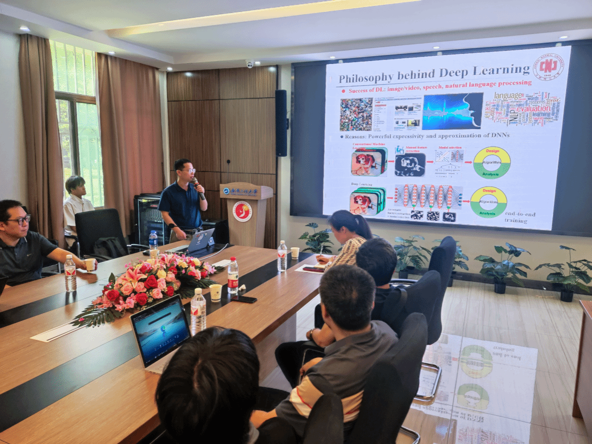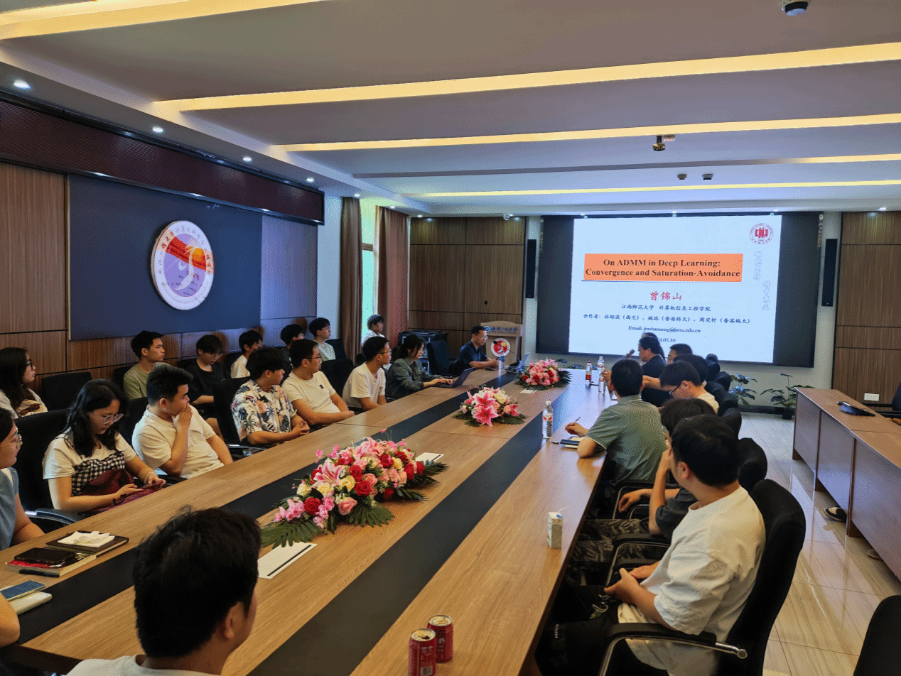 曾锦山教授作了题为“On ADMM in Deep Learning: Convergence and Saturation-Avoidance”的学术报告,他介绍了深度学习在大数据时代的重要性,讨论了传统学习过程中的挑战。并深入探讨了深度sigmoid网络与深度ReLU网络在逼近能力上的理论比较,证明了深度sigmoid网络在某些函数类上的逼近能力不逊于深度ReLU网络。在深度sigmoid网络训练的过程中,饱和问题导致的梯度消失问题更加频繁,而梯度消失的根源是用链式法则更新梯度,以此提出了ADMM算子,并讨论了算法在实际深度学习训练中的稳定性和超参数调整的便利性。