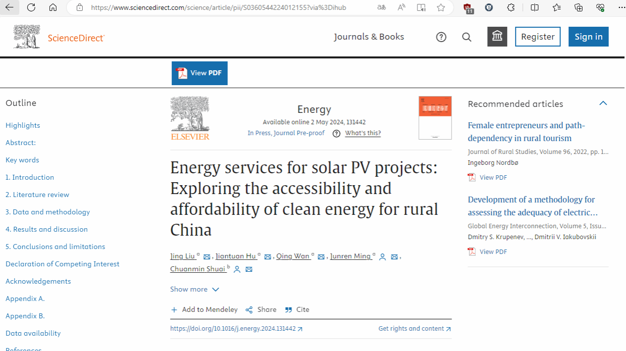 本网讯(通讯员 于怡迪)日前,我校管理学院青年教师刘婧在能源环境科学与管理领域国际权威期刊《Energy》以第一作者身份发表重要成果:“Energy services for solar PV projects: Exploring the accessibility and affordability of clean energy for rural China”。