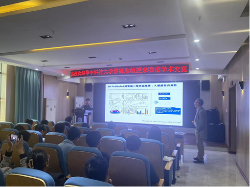 报告会上,常海欣教授介绍了二维材料的起源、发展及变革,二维材料的发现引起了材料、物理、化学领域的巨大变革,推动了低维物理、低维化学、芯片、纳米器件、新能源等领域的广泛交叉研究与进步。随后重点报告了其在二维材料的制备、低维化学、物性调控、纳米器件与新能源应用方面的研究进展,并展示了其基于石墨烯的场效应开发的纳米光电晶体管与光检测器、大面积柔性OLED、敏化太阳能电池(SSC)、紫外线纳米光电传感器、FRET纳米光学传感器以及光催化纳米结构薄膜等一系列高水平研究成果。报告会结束后,在场师生与常海欣教授就石墨烯产品大规模应用、二维材料导电机理等问题进行了深入交流和热烈讨论,对常教授的精彩分享表示感谢。