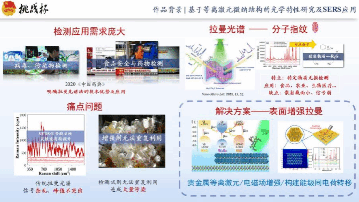 学校高度重视“挑战杯”竞赛和项目团队培育,从团队组建、项目选题、材料申报、答辩展示等多个环节对学生科技创新项目进行全方位培训和辅导,并进行跟踪培育和持续支持。此次获奖团队致力于新型高灵敏度的拉曼检测基底的研究,目前已连续参加两届“挑战杯”竞赛,累计发表相关论文十余篇。团队项目《基于等离激元微纳结构的光学特性研究及SERS应用》是在第十七届“挑战杯”全国三等奖作品《纳米金元宝中等离激元增强光催化和SERS特性研究》基础上的进一步探究,项目通过三年的迭代研究证实了等离激元多模式耦合和电磁场与电荷转移协同增强SERS,为构建双功能拉曼增强基底提供了物理依据和参考,其成果有望实现癌症检测和无伤糖尿病检测的临床应用。
