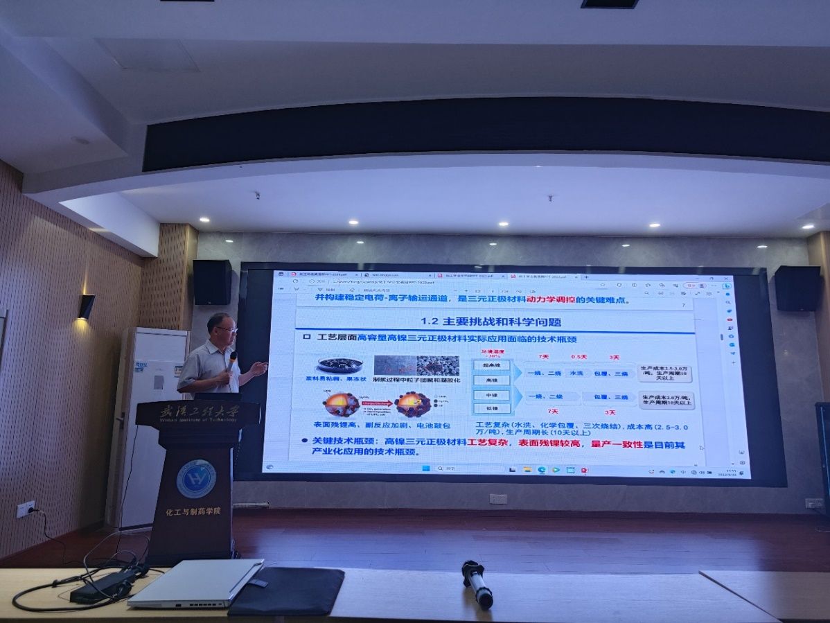 本网讯(通讯员 王奥成)9月23日,应学校邀请,国家杰青、中国科学院深圳先进技术研究院多尺度晶体材料研究中心主任、深圳理工大学材料科学学院科研讲席教授薛冬峰教授来学校访问,并于当天下午在大化工楼610报告厅做了题为“界面稳定的高性能单晶高镍三元正极材料研发与产业化”的学术报告,报告会由化环学院院长余军霞教授和副院长董志兵教授共同主持,100名师生参加了本次学术报告。