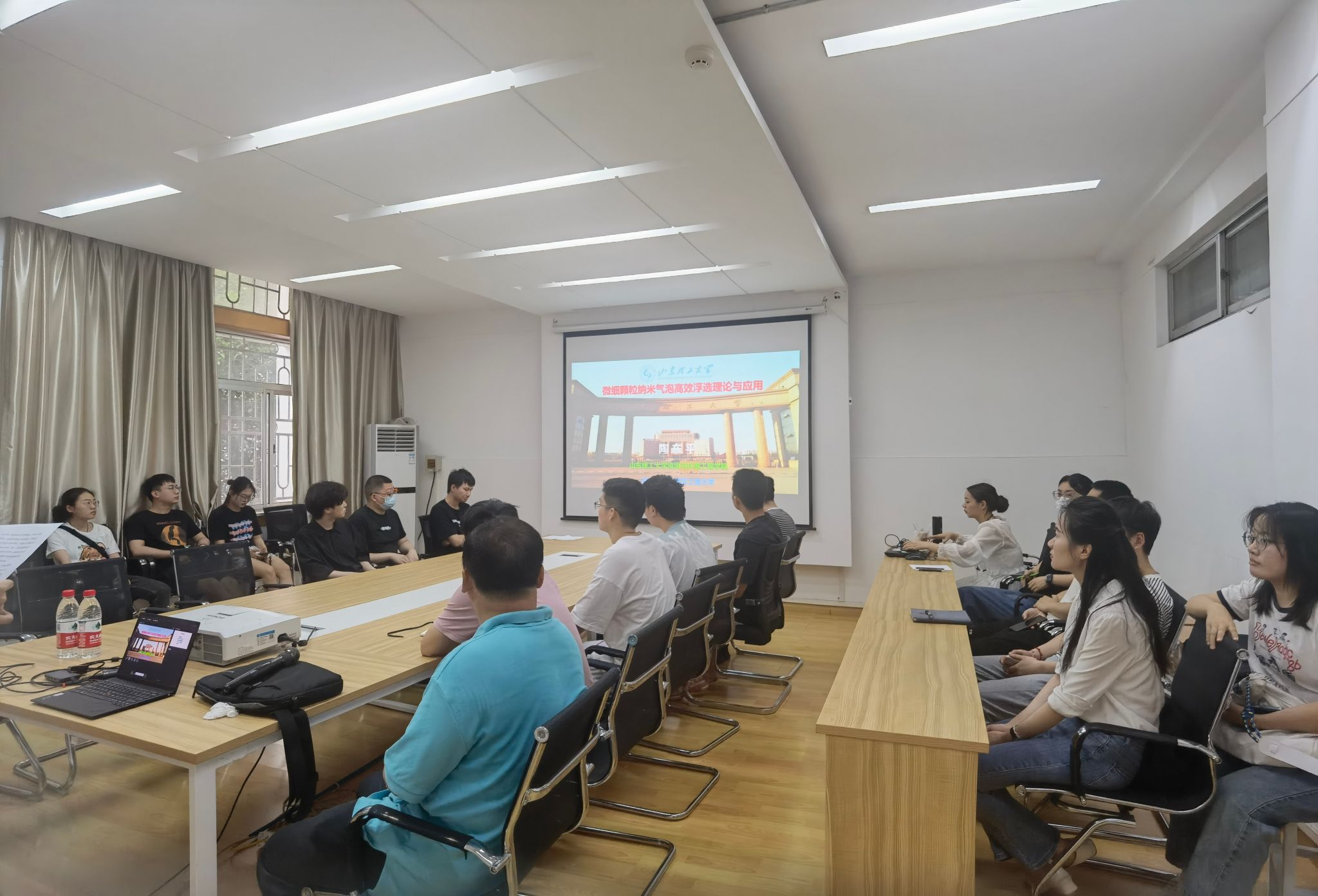 陶教授此次报告深入浅出的介绍了矿物浮选的原理,同时指出传统浮选技术的缺陷,比如:传统浮选机内部搅拌强烈,气泡尺寸大至2.3mm,有效浮选粒度范围窄等问题。报告介绍了纳米气泡特性表征,用直观明了的图表表现纳米气泡的尺寸、浓度、Zeta电位等特性表征及纳米气泡浮选理论。同时还分享了当今社会中纳米气泡浮选应用,目前纳米气泡浮选技术在相关企业的应用情况;纳米气泡生成机理独特,比常规气泡降低气泡剂用量三分之一以上等精彩内容。为研究生开展选矿技术与基础理论提供了研究思路和宝贵经验。在交流互动环节中,与会师生就报告内容纷纷向陶教授提问,报告在轻松愉快的氛围中圆满结束。