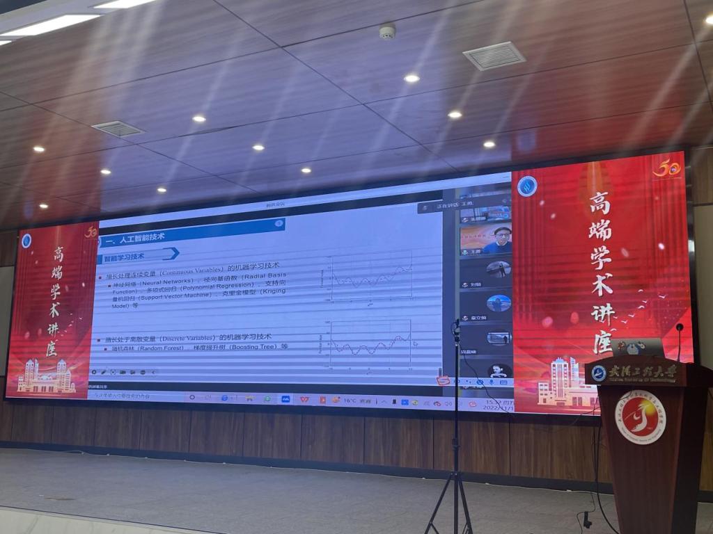 王勇以《人工智能技术在汽车轻量化设计中的应用》为题,从“人工智能技术”“汽车轻量化设计”以及“应用实例”三个方面为师生们作了精彩报告。汽车产业“双碳”目标的实现离不开轻量化技术发展。我国汽车轻量化研究以推动“多目标设计+多材料混合应用”为核心,提出重点要突破的关键核心技术,为中国品牌产品轻量化水平的持续提升奠定基础。主题报告对轻量化结合人工智能算法分析作了重点阐述,从汽车轻量化中均匀实验、约束优化设计、混合变量设计以及响应不连续设计等方面进行了深入的讨论与交流,这些进化算法以及应用实例非常值得借鉴和学习。