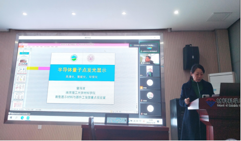 曾海波教授以《半导体量子点发光显示:高清化,智能化,环保化》为题开展讲座。他重点介绍了课题组在新体系量子点方面的研究,包括钙钛矿量子点超纯三基色电致发光的首次发现、室温合成方法、Pe-QLED器件缺陷钝化及再生抑制策略、基于单层半导体的白光LED的提出、可见光通讯、空间辐射探测及能量转换等方面的进展。访谈环节中,曾教授表示与我校教师缔结友好情谊,并期待大家前往南京理工大学继续深造。