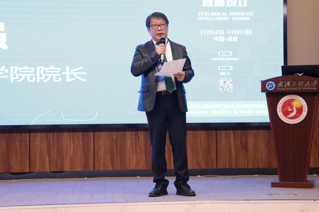 副校长喻发全代表学校对会议的顺利召开表示热烈的祝贺,向各位现场和线上的专家学者、嘉宾朋友和学界同仁表示热烈的欢迎和衷心的感谢。他向与会专家、领导和嘉宾介绍了尊龙凯时人生就是博基本情况,指出学校高度重视生态文明建设,在破解“化工围江”、废弃物资源化、延长磷矿资源等方面做出重要贡献。本次会议以“生态引领·智慧设计”为主题,从生态设计的宏观视角探讨生态设计的使命与趋势,设计教育的趋势与前沿;从生态设计的城乡视角探讨乡村振兴与城市形象构建及城市品牌传播中的生态设计实践;从生态设计的方法视角探讨数字化、智能化背景下生态设计的创新与变革。希望大家线上线下畅所欲言,各抒己见,百家争鸣,碰撞出思想的火花,产出理念的共鸣,为我国的生态文明建设和设计事业发展作出更大的贡献。