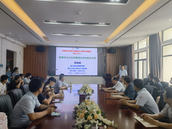 佘远斌院长介绍了自己的研究领域和科研团队,并从国家安全与应急管理的重大要求、公共安全概况及体系的构建、应急管理体系的构建及运用、团队在应急管理核心技术研发方面的成果及应用、常见重要安全标识的准确辨别与使用、公共安全与应急管理未来对策等六个方面作了深入浅出的讲解。
