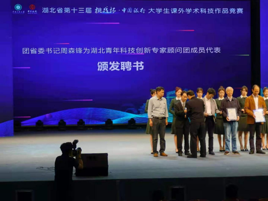 本网讯(通讯员 张哲)5月19日下午,由团省委、省科协、省教育厅、省学联主办的湖北省第十三届“挑战杯·中国银行”大学生课外学术科技作品竞赛优秀项目展示活动暨颁奖仪式在中南民族大学举行,我校捧得“优胜杯”,机电工程学院院长陈绪兵作为代表受聘”挑战杯“大赛专家顾问,我校六个荣获一等奖项目的代表参加活动。