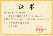 本网讯(通讯员 刘亚丽)近日,学校大学生创新创业基地项目在质量和安全上连续获得了“2022-2023年度第三批湖北省建筑结构优质工程”、“2023-2024年度第一批湖北省建筑工程安全文明施工现场”、“武汉市建筑施工安全生产标准化示范工地”以及武汉市“结构优质工程”4项荣誉称号。