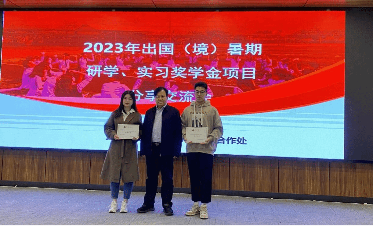 随后彭石玉向学成归来的学生代表颁发研学奖学金证书,以资鼓励。