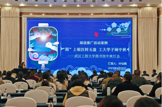 在2022年度湖北省图书馆学术年会上我校图书馆副馆长叶仙娥作为示范项目获奖单位代表上台领奖,并作为获奖单位代表在会上交流分享了举办“‘图’上银汉转玉盘,工大学子闹中秋”中秋灯会活动经验,主要从背景介绍、项目概况、主要措施、亮点特色、示范作用、推广价值六大方面汇报,通过案例分享充分展现我校图书馆特色活动,并发挥示范引领作用,提高了我校知名度与影响力,并为全省图书馆全民阅读工作、文化理念传递提供思路,精彩的宣讲赢得了全场同仁的阵阵掌声。