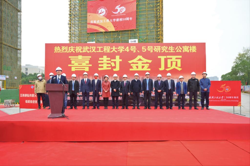 校长王存文在致辞中指出,在全校上校深入学习贯彻党的二十大精神之际,在全校师生喜迎建校50周年的大好日子里,在工地现场举行此次封顶仪式,代表学校对项目封顶表示热烈祝贺。他强调,要以4号、5号楼的封顶为契机,将该项目打造成阳光工程、廉政工程、质量工程,力争成功创建“楚天杯”,建成金融港片区一道亮丽的风景线。为此,他提出3点希望:一是希望行政主管部门一如既往支持项目建设;二是希望各参建单位群策群力、密切配合,注重细节、提升质效,确保项目如期交付使用;三是希望跟踪审计单位热情服务、做好监督,推动项目更好更快前进。