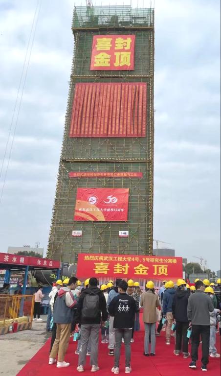 本网讯(通讯员 余显材)11月16日上午,学校研究生公寓项目4号、5号楼主体结构喜封金顶仪式在工地现场举行,标志着研究生公寓项目建设取得了阶段性成果,为庆祝建校50周年再次献上一份大礼。