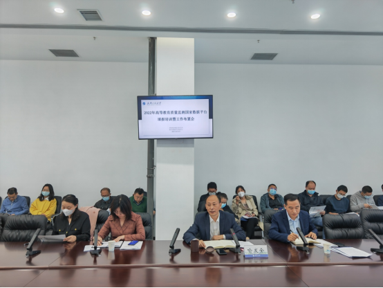 本网讯(通讯员 张荟)10月14日下午,学校在教育教学综合楼215会议室召开2022年高等教育质量监测国家数据平台填报培训暨工作布置会。会议由副校长喻发全主持,相关职能部门、学院主要负责人及统计人员参加会议。
