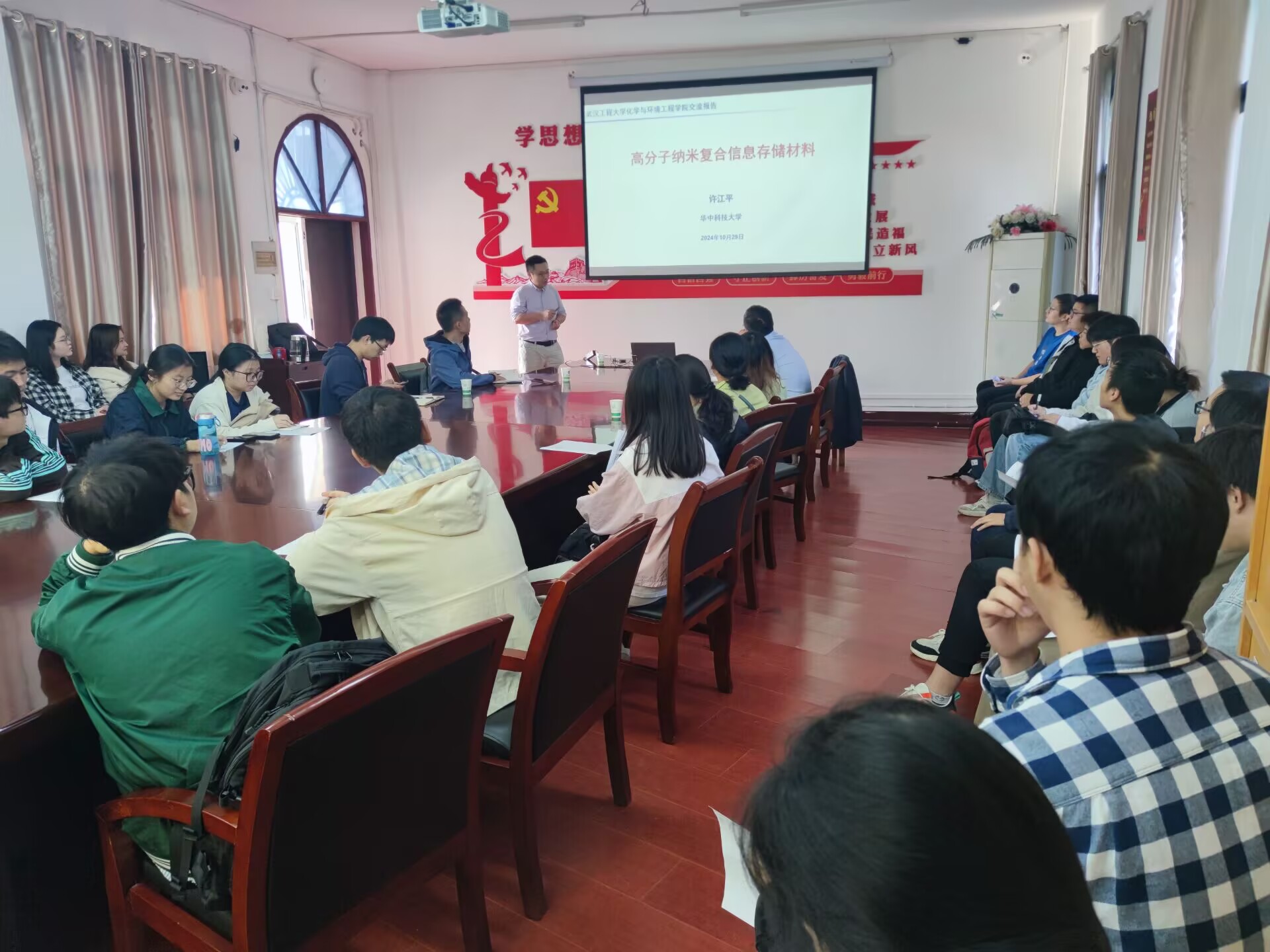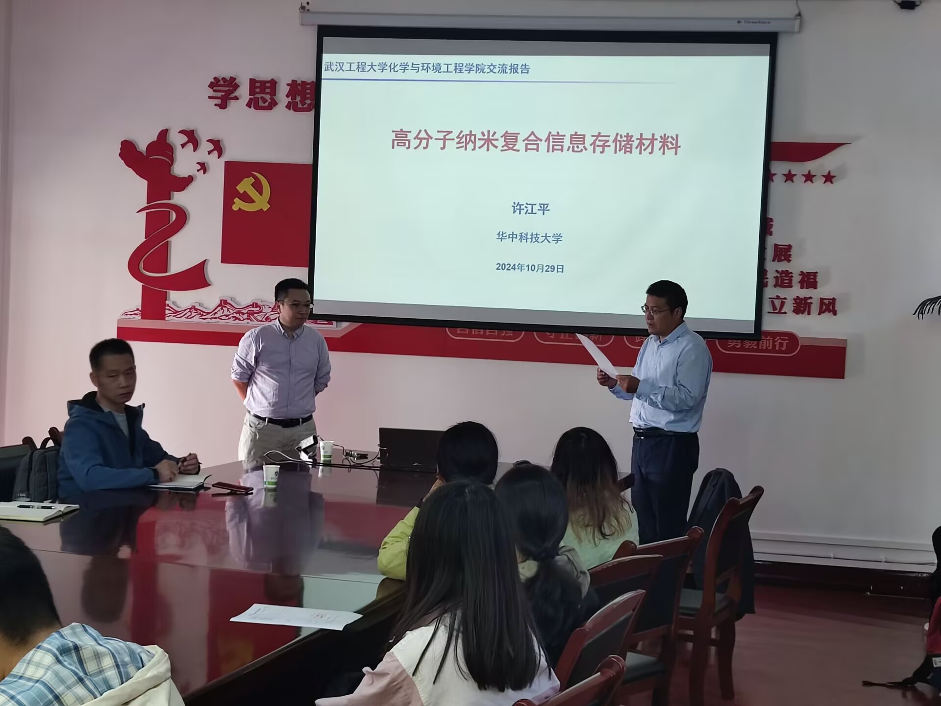 本网讯(通讯员 程然 李小娣)11月9日下午,应我校化学与环境工程学院余军霞教授邀请,华中科技大学化学与化工学院许江平研究员为我校师生做了题为“高分子纳米复合信息存储材料”的学术报告。本次报告会由化学与环境工程学院董志兵教授主持,学院部分教师及学生参加了此次报告。